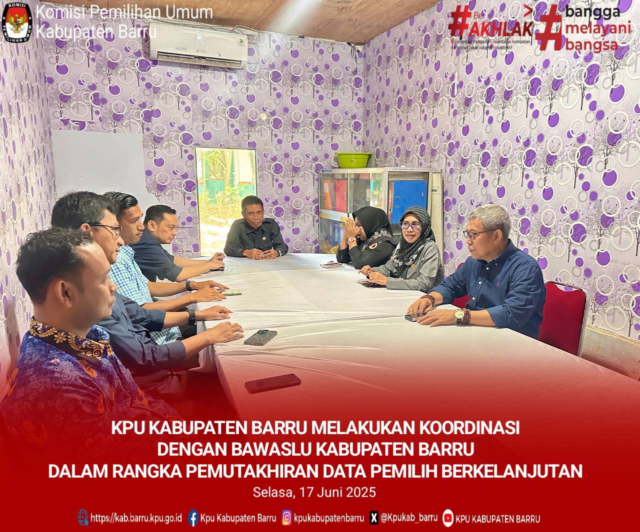 KPU Kabupaten Barru Melakukan Koordinasi dengan Bawaslu Kabupaten Barru Dalam Rangka Pemutakhiran Data Pemilih Berkelanjutan (PDPB). Kantor Bawaslu Kab. Barru (17/6/2025)