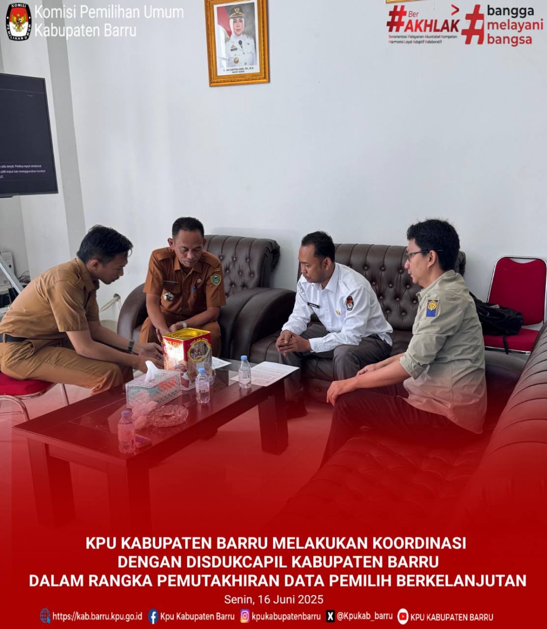 KPU Kabupaten Barru Melakukan Koordinasi dengan Disdukcapil Kabupaten Barru Dalam Rangka Pemutakhiran Data Pemilih Berkelanjutan (PDPB). Kantor Disdukcapil Kabupaten Barru, (16/6/2025)