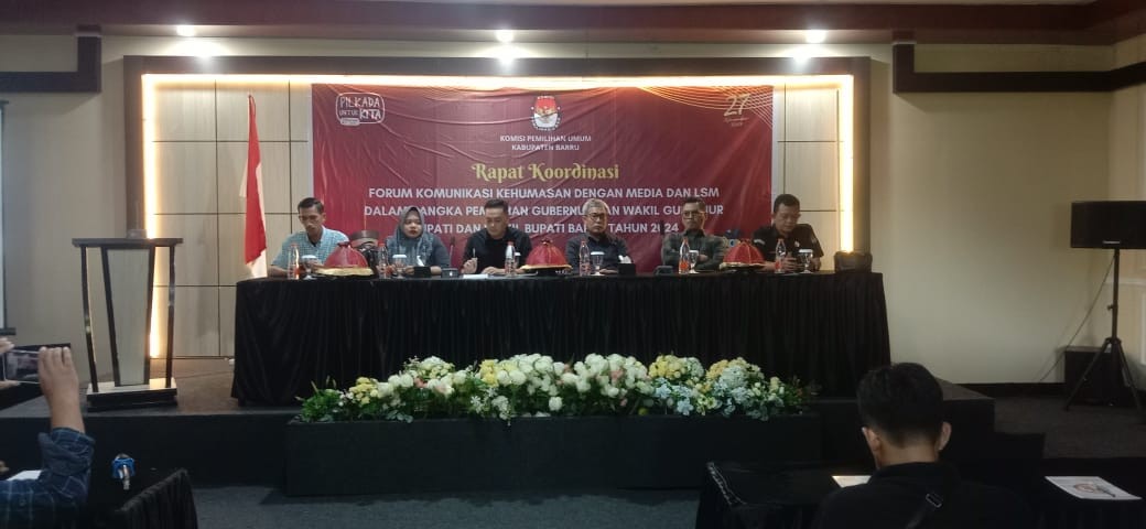 Antara Pemerintah Kabupaten Barru Bersama KPU Kabupaten Barru, Bawaslu Kabupaten Barru, Polres Barru Dan Kodim 1405 / Parepare, Pada Pemilihan Bupati Dan Wakil Bupati Kabupaten Barru Tahun 2024.Yang di buka oleh Bupati Barru, Bertempat di ruang Bupati MPP lantai 5 Kabupaten Barru. Hadir pada kegiatan ini Ketua DPRD Kabupaten Barru, Kapolres Barru, Dandim 1405/Parepare, Kajari Barru, Ketua Pengadilan Negeri Barru, Bawaslu Kabupaten Barru,Kepala OPD Barru.