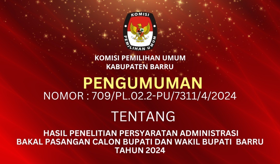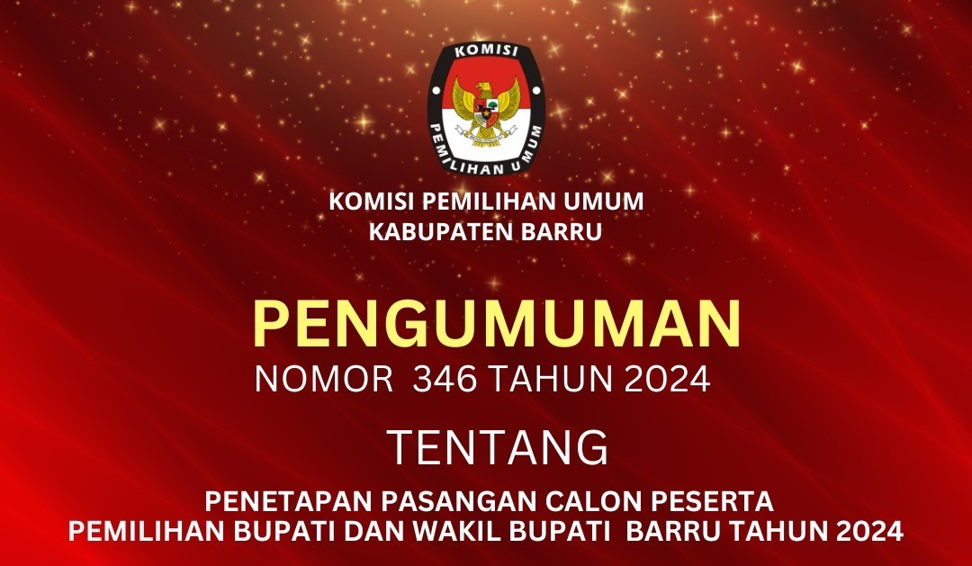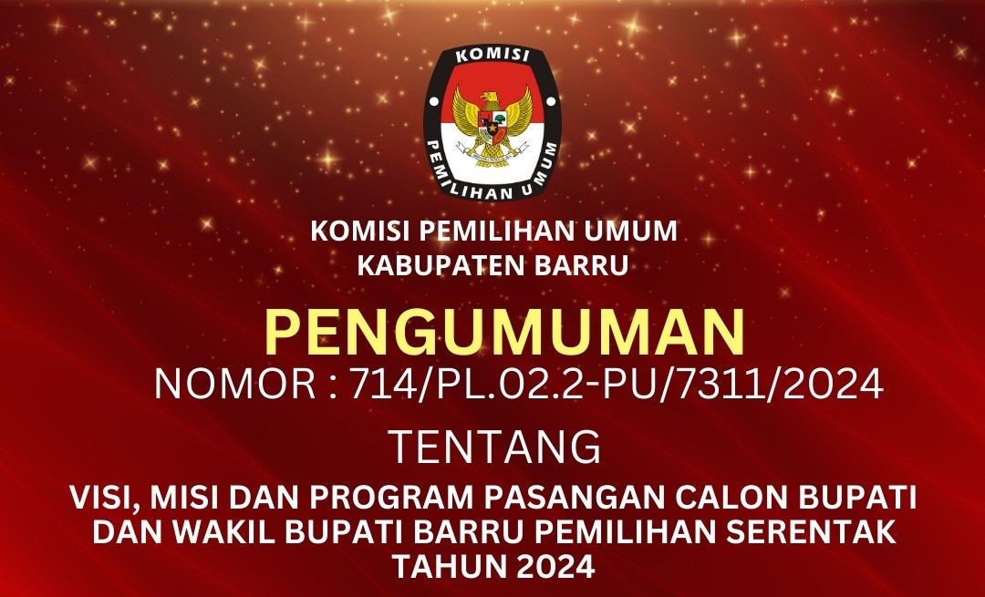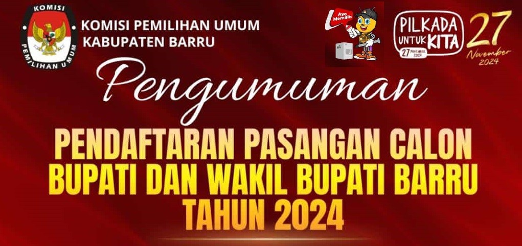 Dowload Link file : PENGUMUMAN PENDAFTARAN PASANGAN CALON BUPATI DAN WAKIL BUPATI KABUPATEN BARRU TAHUN 2024