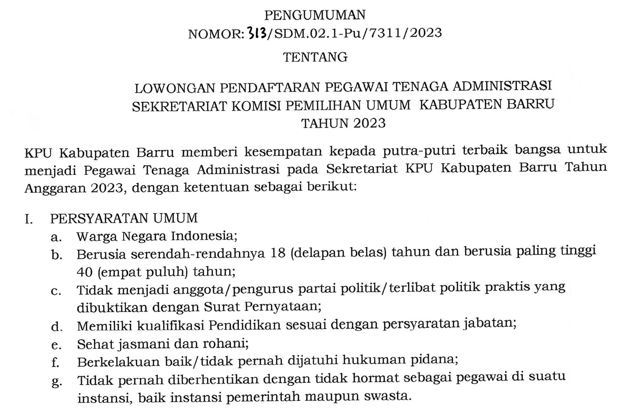 Umum, Komisi Pemilihan Umum Kabupaten Barru mengundang Warga Negara